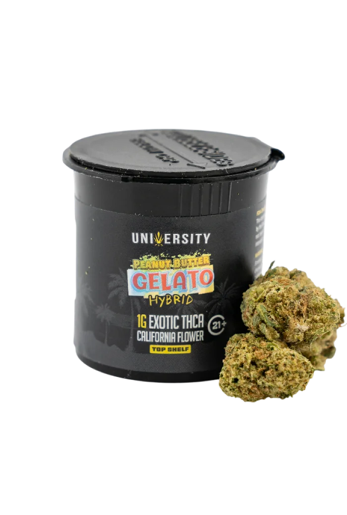 - A Peanut Butter Gelato THCA Exotic Flower 1G that balances indulgence and potency